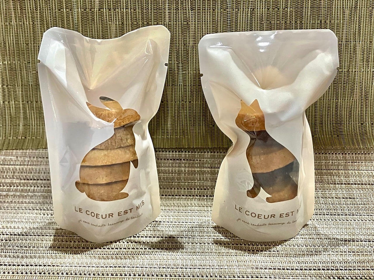 2種のフレーバーが楽しめるねことウサギ柄の袋が入ったクッキーのセット版です。